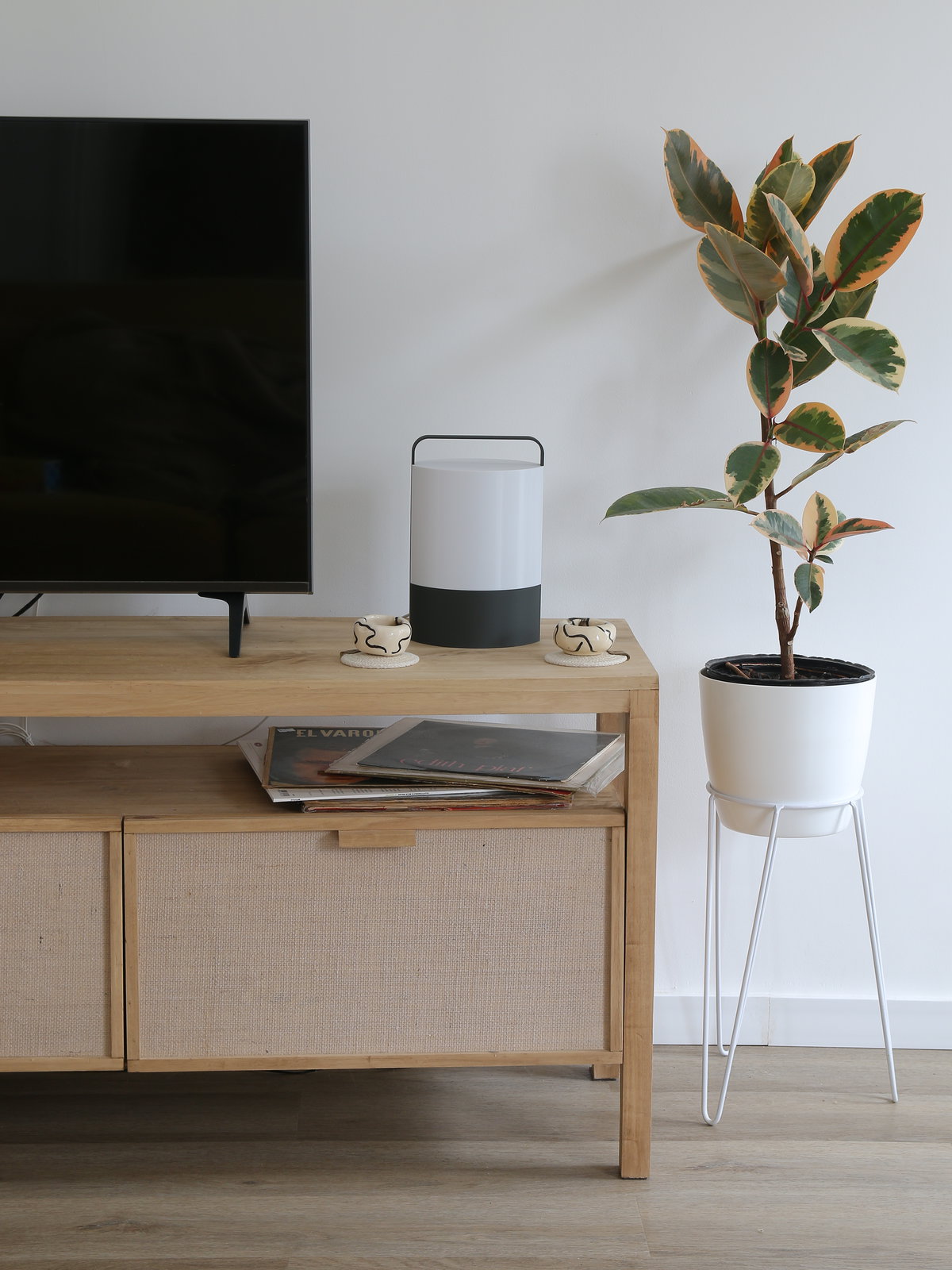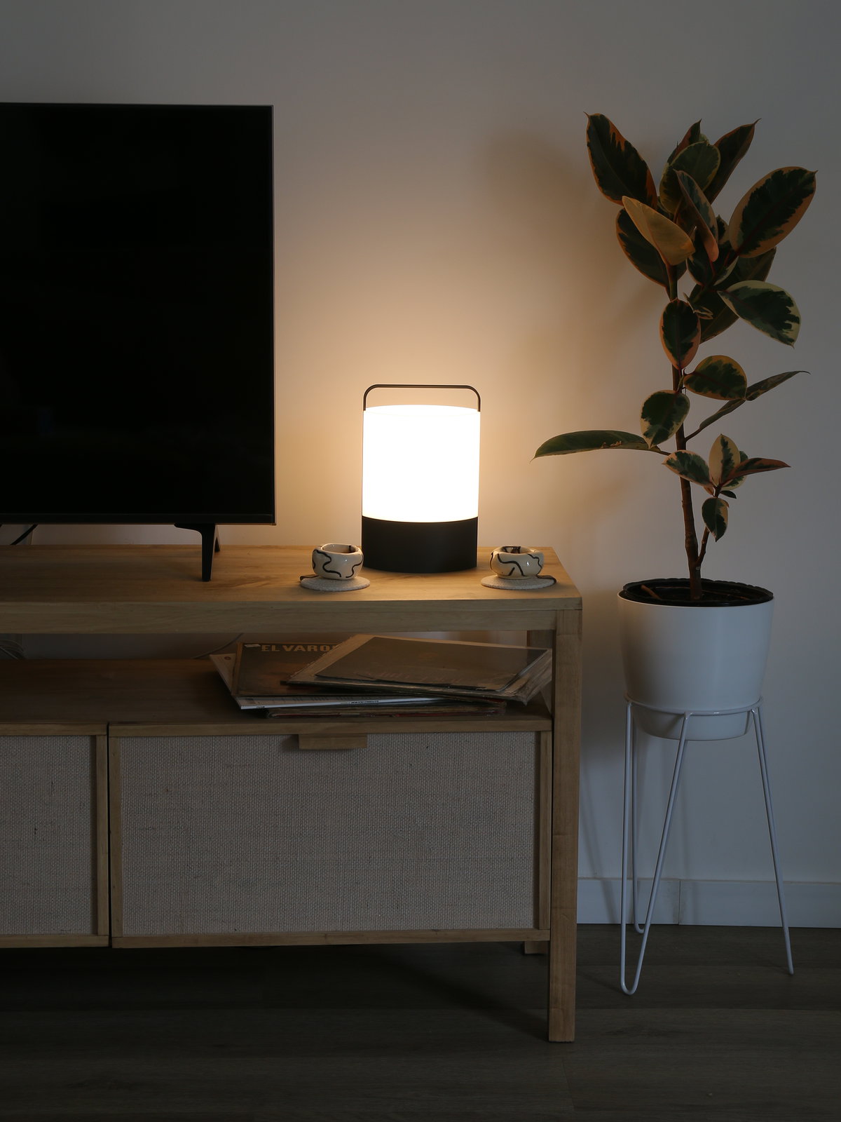 Diseñada para integrarse con naturalidad a los espacios, funciona tanto como velador en mesas de luz, o como iluminación cálida en dormitorios, recibidores y muebles de salón. De noche crea una atmósfera calma; de día integra se como objeto decorativo.